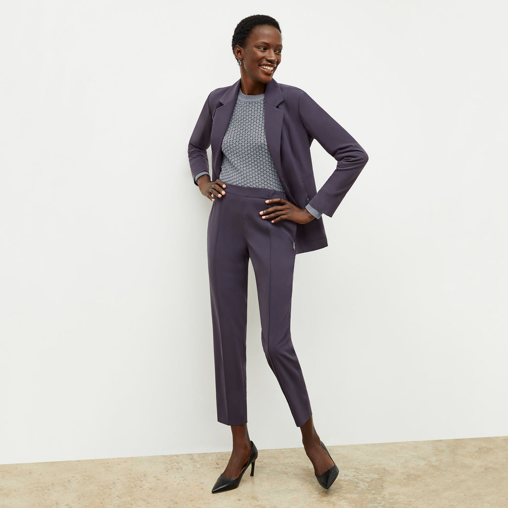 The Colby is our version of a sweatpant for work. An elastic waistband at the back provides comfort and ease, while a jogger-style leg that tapers at the ankle creates a streamlined silhouette.