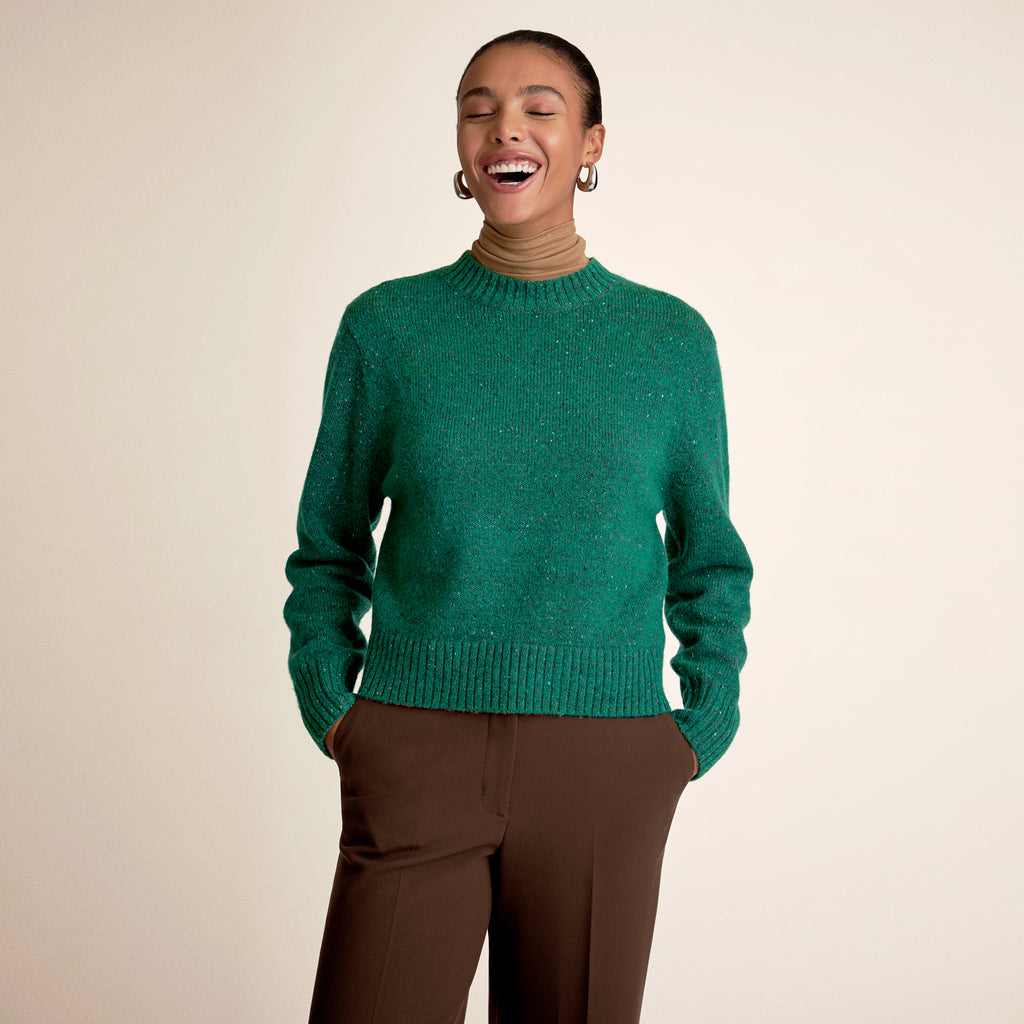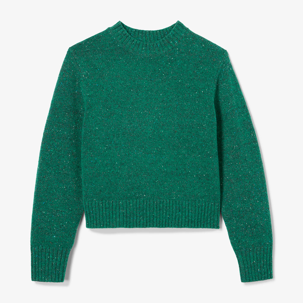 As easy as your favorite sweatshirt, as beautiful as a luxury knit. Features a slouchy fit and a playful “confetti” knit with a substantial handfeel. Ribbing at the hem and cuffs keep it elevated.
