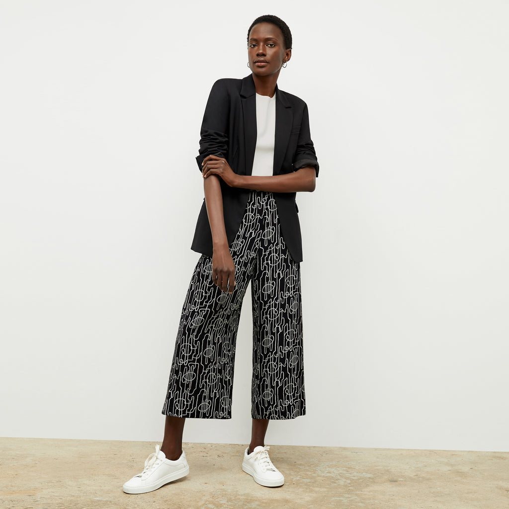 These wide-leg beauties feature an understated pleat at each side-seam, which creates a sleek, flattering line and puts a swish in your step. The Zhou has a high rise and front closure that fastens comfortably at the natural waist.